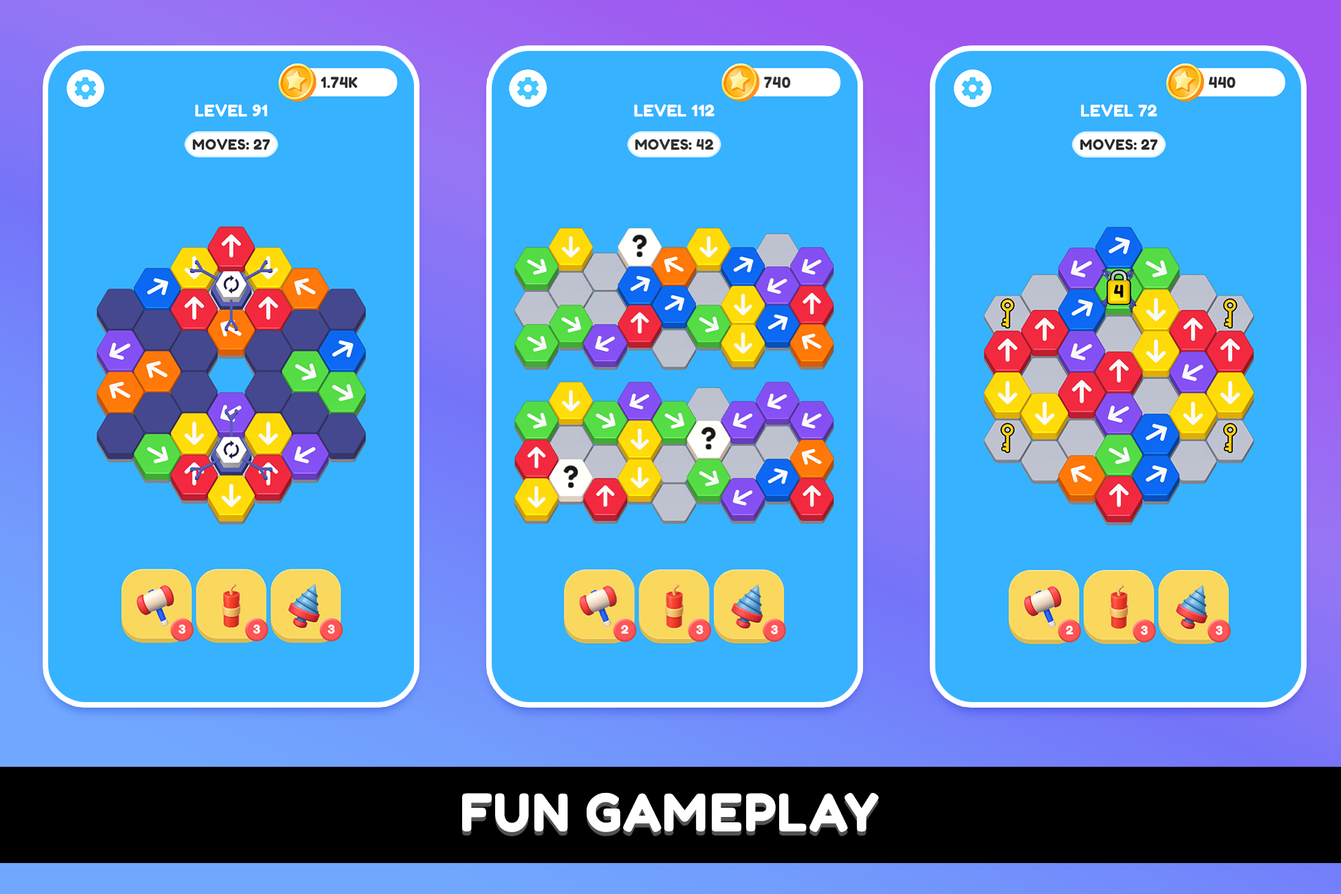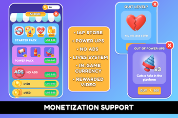 This fully customizable puzzle game template has a trending gameplay, a level map, lots of interactables and effects, power-ups, a lives system, an IAP store, and everything is easy to customize!