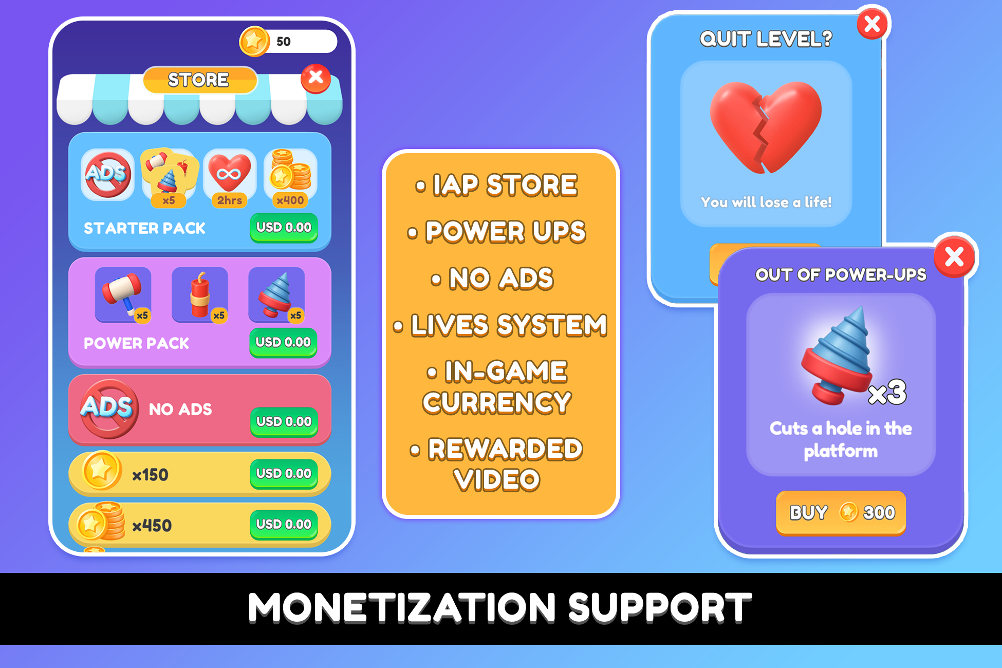 โ โ โ โ ๐ธ IAP store with coins, power-ups, and no ads